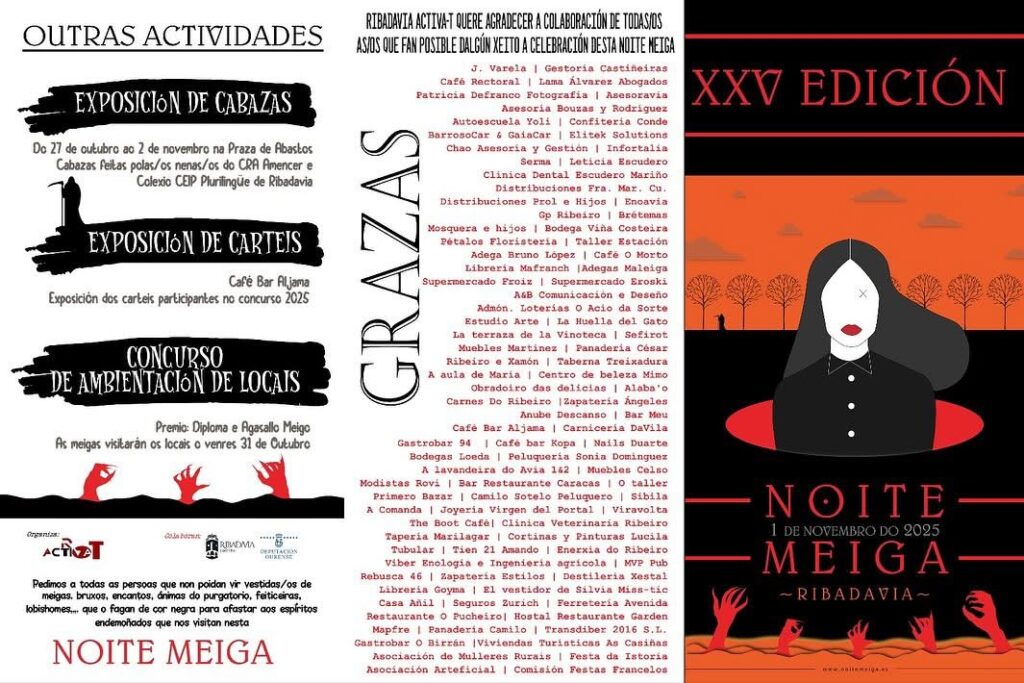 La Festa do Portal 2025 regresa a Ribadavia del 5 al 9 de septiembre, combinando tradición, música y diversión en un programa lleno de actividades para todas las edades. Desde la clásica quedada de motos, los desfiles de xigantes e cabezudos, y el mercado de artesanía, hasta los conciertos que cada noche llenarán la villa de energía —con grupos como Pakolas, Os Coribantes o la verbena de la Orquestra Royal Espectáculo—, la fiesta promete no dejar a nadie indiferente. El lunes 8, día grande, tendrá lugar la procesión en honor a la Virxe do Portal, acompañada de la Banda A Lira de Ribadavia y seguida de la esperada gran tirada de fogos artificiais, que iluminará el cielo como colofón de una jornada cargada de emoción. Una cita imprescindible para disfrutar de la esencia de Ribadavia en su máximo esplendor.